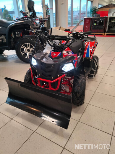 Mönkijä toimitetaan tehdaspaketissa, jolloin mönkijään täytyy itse kiinnittää renkaat, ohjaustanko ja telineet.  Voit myös tilata verkkokaupastamme helposti kasauspalvelun, jolloin mönkijä toimitetaan ajovalmiina.