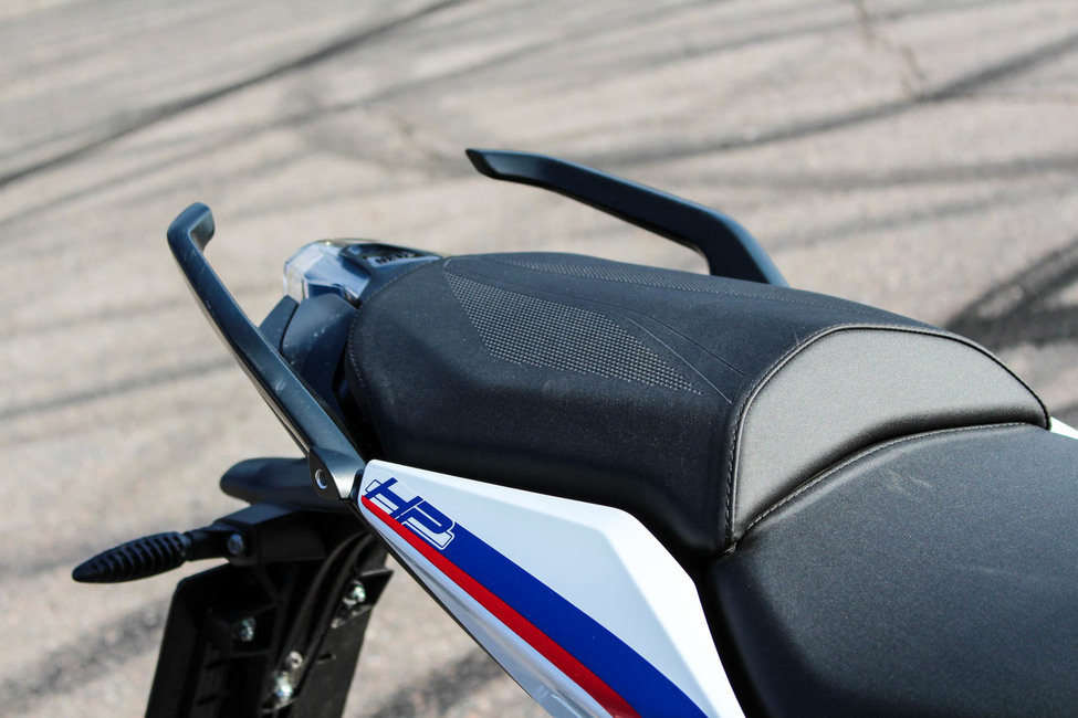 BMW varustellaan autojen tyyliin erilaisilla varustepaketeilla sekä kattavalla lisävarustevalikoimalla. Sanomattakin selvää, että kokonaishinta karkaa hetimiten aivan erilaisiin lukemiin. Koeajettu versio oli 831 euroa kalliimpi HP-malli, mikä näkyy pyörän ulkokuoressa HP-maalauksena ja muina koristuksina.