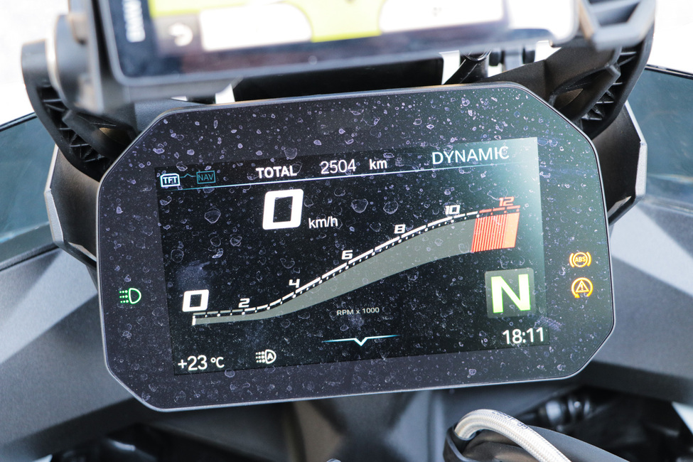 Yksi mainitsemisen arvoinen asia on myös muista BMW-malleista tuttu kookas TFT-näyttö, joka tekee kuskin paikasta kertaheitolla modernin ja viihtyisän. Tällaiseen näyttöön. verrattuna perinteinen viisarinäyttö vaikuttaa todella antiikkiselta. Toimintoja näytössä ei tosin ole yhtä laajasti kuin vaikkapa Triumphilla tätä nykyä.
