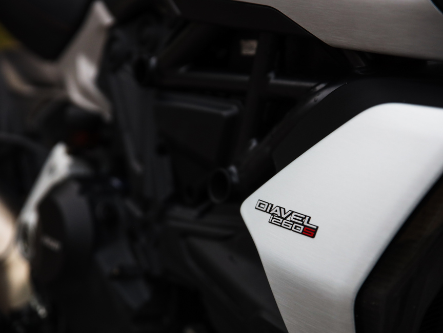 Hinnaston huipulta löytyvä 1260 S on Diavel -malliston terävin kärki. Runsaamman varustelun lisäksi merkittävin ero vakioon ovat Öhlinsin täysin säädettävä alusta sekä pykälää paremmat Brembon M50 -jarrusatulat. Vaikka perusmallinkaan ajo-ominaisuuksia ei käy haukkuminen, on S- mallin ajettavuus näillä eväillä selvästi sporttisempi. Tanakamman ajotuntuman lisäksi Öhlins-jousitus tarjoaa karamellia myös silmille, kultaisen värinsä ansiosta.