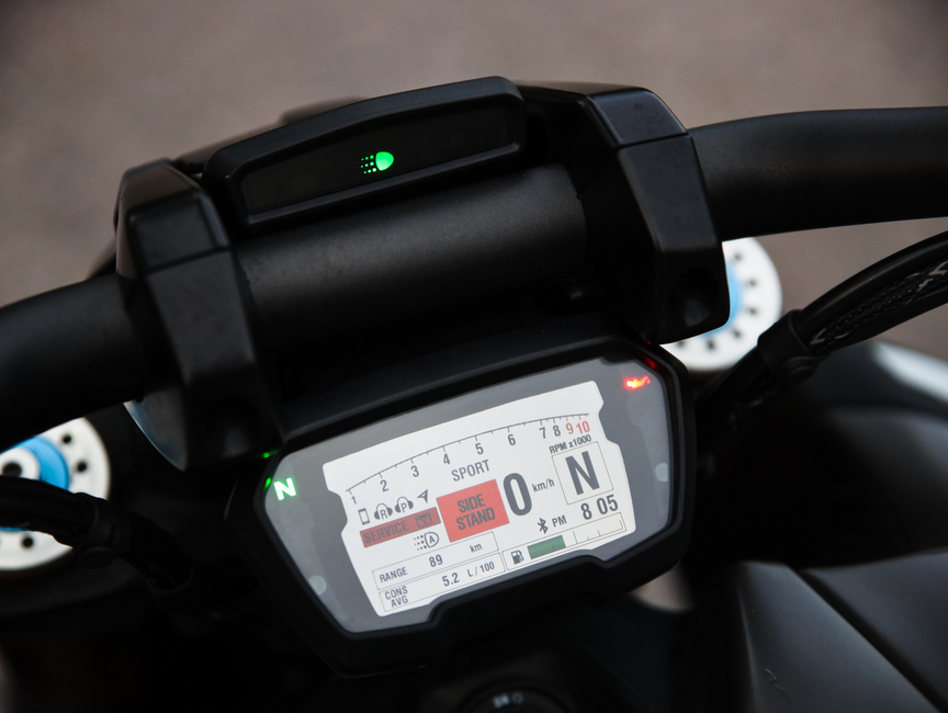 Roisin kokoinen 240 milliä leveä takarengas tarjoaa lämpöisellä asfaltilla rajattoman tuntuisesti pitoa, eikä keulakaan karkaa lähdössä liian ylös hanakasti toimivan luiston- ja keulimiseneston ansiosta. Luonnollisesti kyseisten avustimien toimintaa voi myös muokata mieleisekseen.