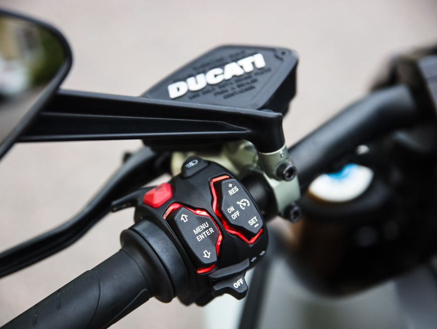 Ajoergonomia on kuin tehty raivokasta kiihdyttelyä varten. Kiihdytyksessä takamus saa hyvän tuen voimakkaasti muotoillusta penkistä ja kuski voi keskittyä kahvan kääntämiseen sekä toimenpiteestä aiheutuvan putkinäön taltuttamiseen. Ducatin molempiin suuntiin toimiva quickshifter ei herkkyydellään aivan markkinoiden kärkeen yllä, mutta toiminta on kuitenkin täsmällistä.
