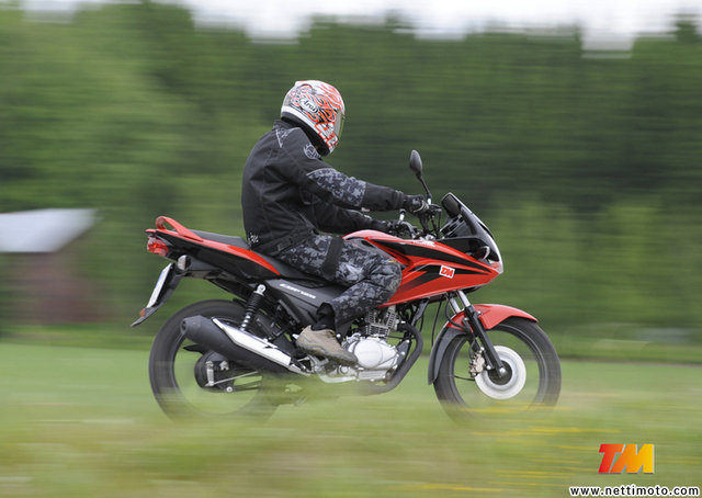 Parhaimmillaan pyörä on kaupunkiliikenteessä. Ohjaus on kevyt, ja alhaisilla kierroksilla moottori vastaa kaasuun hyvin pienestä tehostaan huolimatta. Alakierroksilla ei esiinny minkäänlaisia tärinöitä.