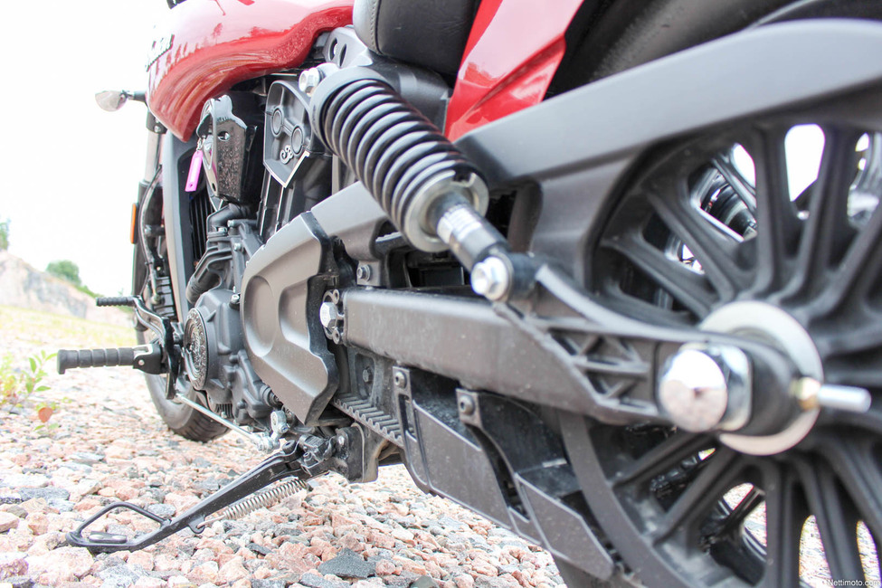 Liikkeelle lähtöön riittää pelkkä kytkimen nosto ja Inkkari lipuu pehmeästi liikennevirtaan. Indianin moottori ei juurikaan värise. Ylemmillä kierroksilla jonkin asteista kutinaa saattaa kämmenissä tuntua, mutta kokonaisuutena voimanlähde on markkinoiden sivistyneimpiä. Joku saattaa kokea customin moottorin värinättömyyden negatiivisena asiana, mutta varsinkin pidemmällä matkalla ominaisuutta ei voi kuin arvostaa.