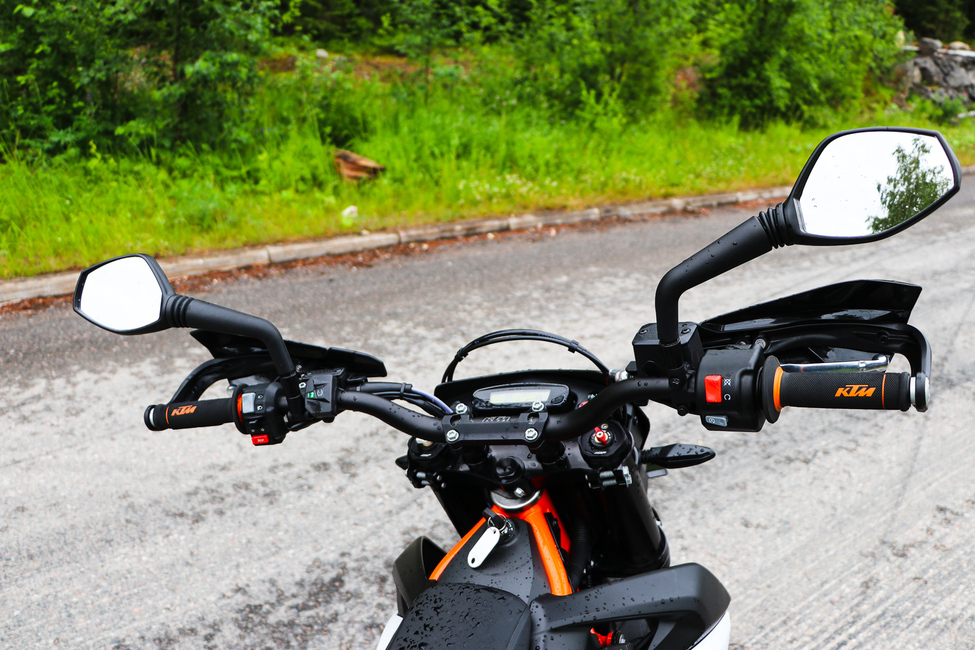 KTM:n kanssa homma on toisenlainen, sillä voimaa vain riittää ja riittää ja riittää. Mitä pidemmälle konetta jaksaa huudattaa, sitä pidemmälle se voima yltää. Juuri kun tuntuu siltä, että rajoittajan on aivan pakko tulla vastaan, kerää kone edelleen lisää kierroksia. Ja kun ajatus on sellainen, että eihän laite voi kiertää enää yhtään lisää, löytyy reservistä vielä 1000 kierrosta.