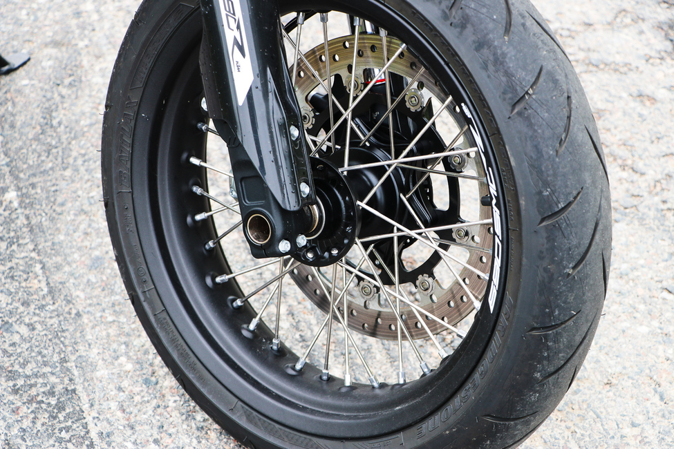 SMC R suorastaan vaatii kuskia keulimaan, sillä sopivasti kierroksia lataamalla keula kiipeää kohti korkeuksia uskomattoman vaivattomasti. Muutamalla ensimmäisellä vaihteella on hieman hankalaa ajella sivistyneesti.