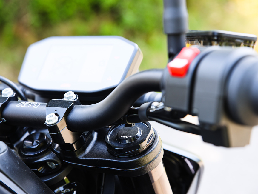 Yksi ehdoton lisävaruste on Quickshifter+, jonka ansiosta vaihteet voi vaihtaa ilman kytkintä. KTM:n ideologiaan kuuluu tarjota vaihdot sekä ylös että alas ja etenkin radalla shifteri on varsin mukava varuste. Toki se tarjoaa käytön helppoutta myös katuajossa.