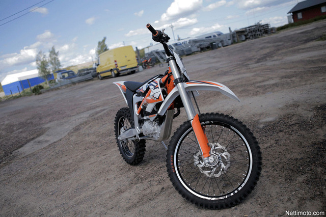Ajokokemus on sekin persoonallinen, sillä äänimaailma eroaa melkoisesti yksimukisen crossarin raa’asta soinnista. Käynnistyminen on äänetöntä ja ajamisen aikana suurin ääni kuuluu ketjujen kilinästä ja kahinasta.