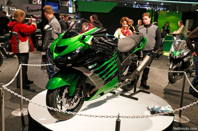 Tänäkin vuonna ihastelluimpien pyörien joukkoon kuului Kawasaki ZZR1400. Kaudelle 2014 on luvassa sentään jotain uutta, sillä ZZR1400 Performance Sport – mallista löytyy Öhlinsin takaiskunvaimennus ja Akrapovicin titaaninen äänenvaimennin.