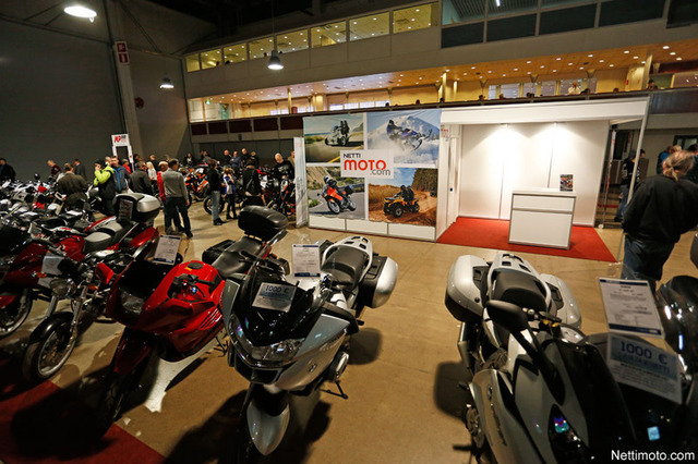 MP14-messuilla oli tänäkin vuonna tarjolla myös käytettyjä moottoripyöriä. Nettimoton osastolla oli jälleen näytillä iso kasa vaihdokkeja, joihin pääsee käsiksi huomattavasti halvemmalla. Sen 90 000€ voikin sitten käyttää johonkin aivan muuhun.