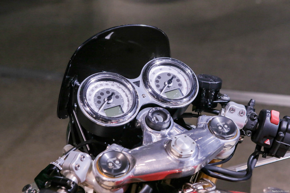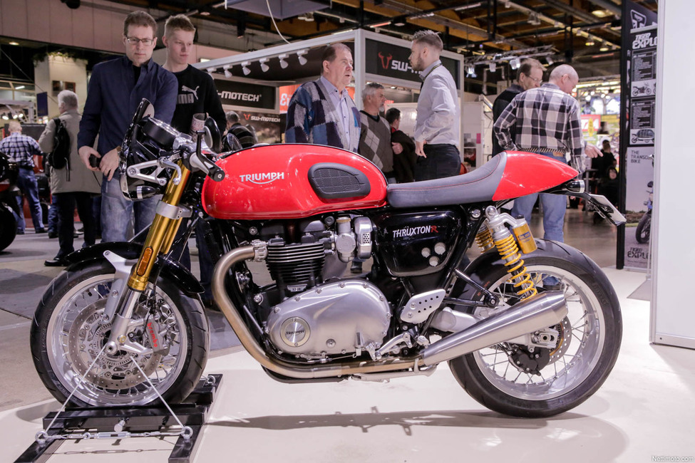 Menneisiin aikoihin nojaillaan myös Triumph-leirissä, sillä Bonneville-mallisto uudistetaan kokonaisuudessaan. Voimanlähteenä toimii 900- tai 1200-kuutioinen moottori, joka tuottaa parhaimmillaan 112 Nm:n huippuväännön 3000 kierroksen kohdalla. Thruxton R on muutenkin raju tapaus, sillä jarruvarustuksena toimii Brembon monobloc-jarrut ja Showan keula.