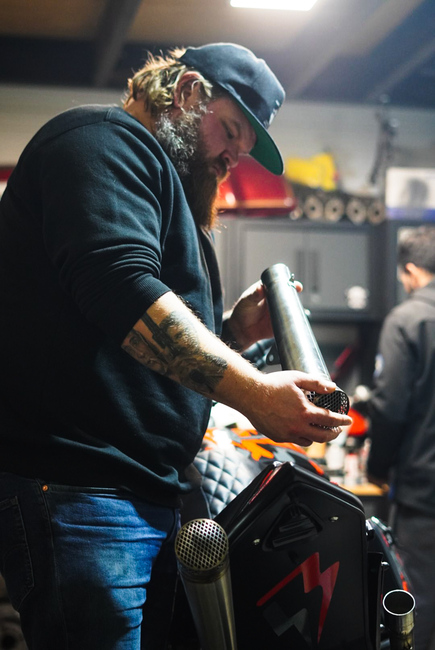 Rautojen leveys on toki perusteltua, mutta silmä vaatii ratkaisun, joka tasapainottaisi kokonaisuutta. Yhtäkkiä päähäni tulee ajatus siitä, että ehkä pyörän takaosaan suunnitellut laukut kannattaakin istuttaa kaatumarautojen sisäpuolelle. Mike ei innostu ajatuksesta, mutta alkaa kuitenkin sovitella laukkuja keulaan.