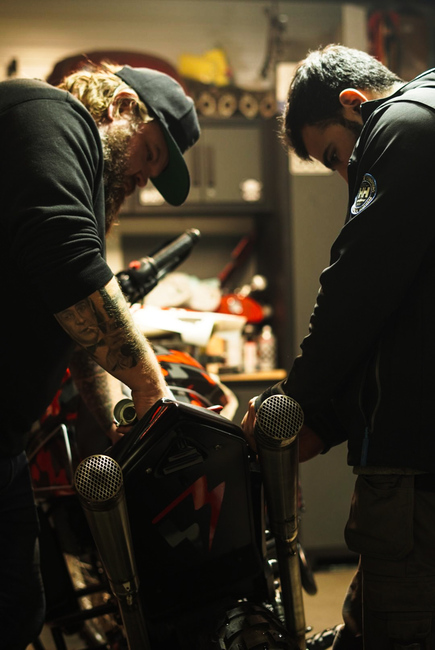 Yamahassa oli alun perin kaksi vaimentajaa, jotka nousivat ylös satulan molemmille puolille. Tätä on tarkoitus kunnioittaa myös lopullisessa pyörässä, vaikka vaimentajat vaihtuvatkin tyylikkäämpiin, sirompiin ja myös äänekkäämpiin. Onneksi putkista löytyy DB-killerit, sillä ilman niitä yksimukisen pyörän äänimaailma olisi turhan raisu.