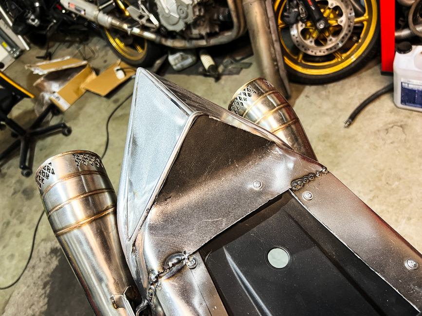 Tankki määrittelee koko projektia, sillä entistä massiivisemmaksi muuttuva keula vaatii tasapainoa muun muotoilun osalta. Kun tankki alkaa muotoutua paikalleen, näyttää se alkuun todella rajulta vedolta.