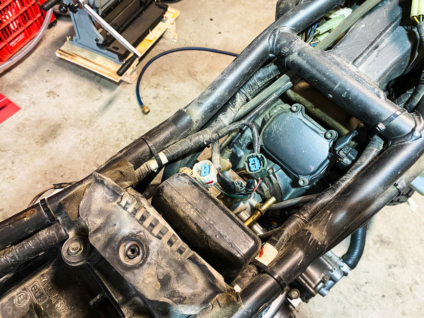 Pyörä purettiin tilanteeseen, jossa ennalleen jäivät käytännössä pyörät, runko, moottori, ohjaustanko ja mittaristo. Poistolistalle menivät kaikki muoviosat, joita oli tankin lisäksi mm. takahäkin koristeena ja penkin alla. Uusiksi menevät niin ikään kaikki valot ja vilkut.
