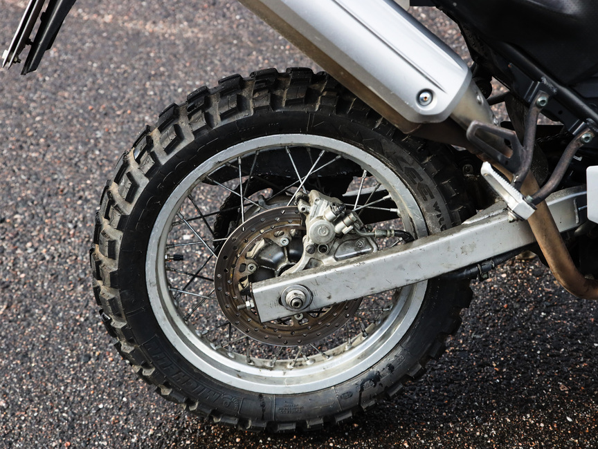 Kiikarissa olin nimenomaisesti juuri R-versio, sillä suurempi etupyörä oli ehdoton edellytys. Supermoto-mallin vanteet ovat molemmat 17”, mutta R-mallin keulalla on 21” etupyörä.