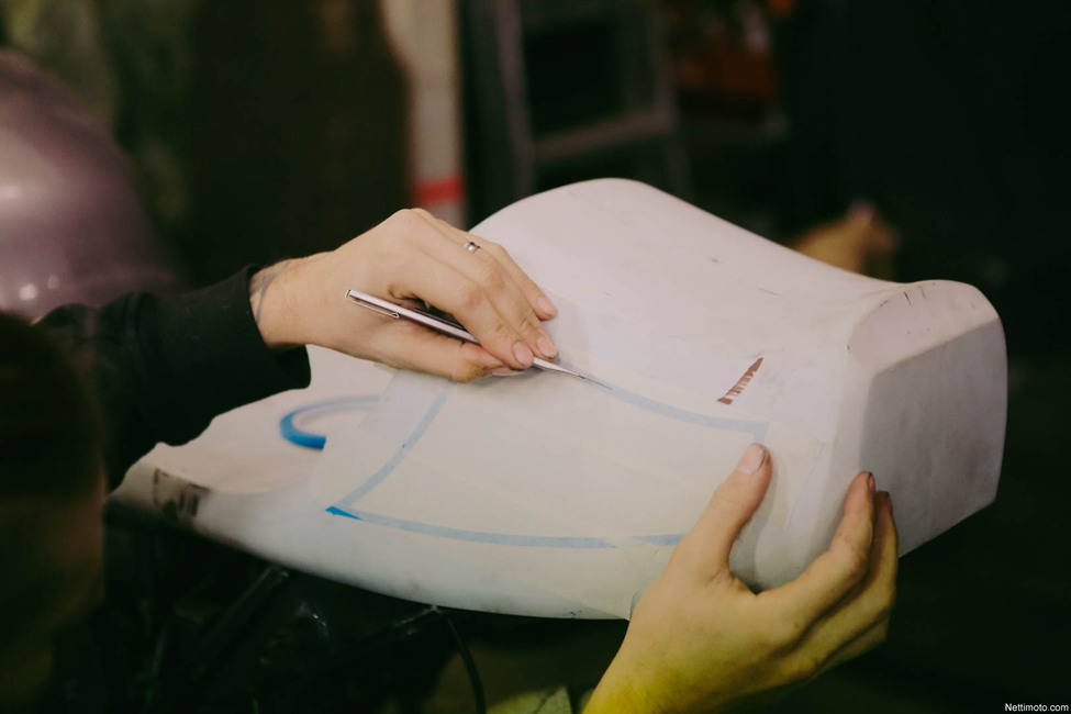 Yksi rakentamisen haasteista onkin nähdä lopputulos päässään etukäteen. Ensimmäistä kertaa toden teolla rakentaessani huomaan jatkuvasti miettiväni asioita ja uusia ratkaisuja. Pyörä ja sen tyylilliset ratkaisut alkavat tulla projektin tässä vaiheessa jo uniin saakka. Kaikeksi onneksi tai harmiksi pyörällä on tiukka deadline, sillä muusana toimii helmikuun alussa järjestettävä Petrol Circus, joka on osa ensi vuoden MP-näyttelyä.