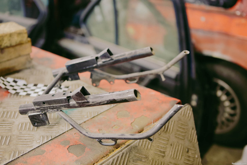 Takahäkin leikkaamisen jälkeen rungon päärunkoputkiin hitsattiin reilun 20 sentin mittaiset jatkot, jotka toimivat takakatteen tukena. Putkien taivutus ja kiinnitys identtisiin asentoihin vaatii pitkäjänteisyyttä ja taitoa, ja käykin hyvin nopeasti selväksi, että päätökseni jättää metallin työstäminen ammattilaiselle on oikea.
