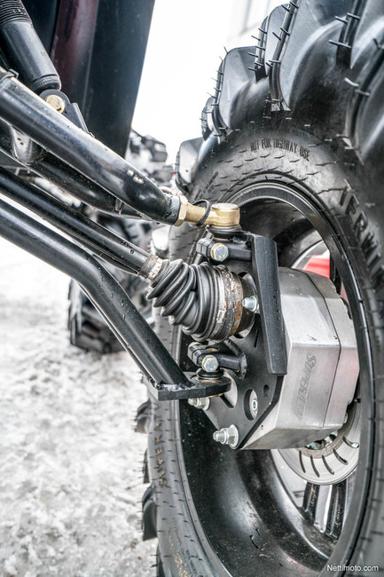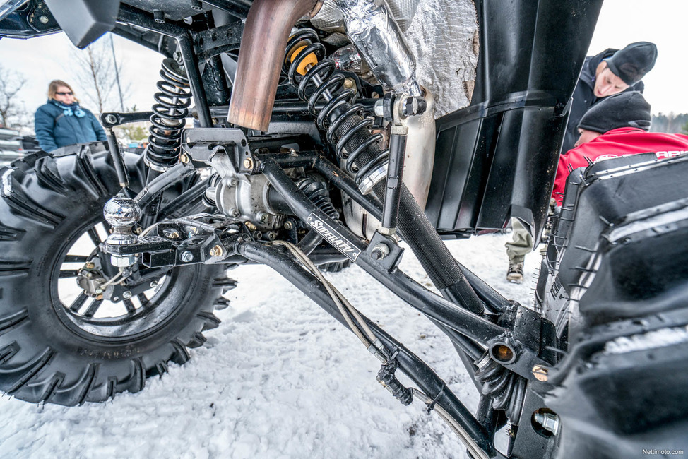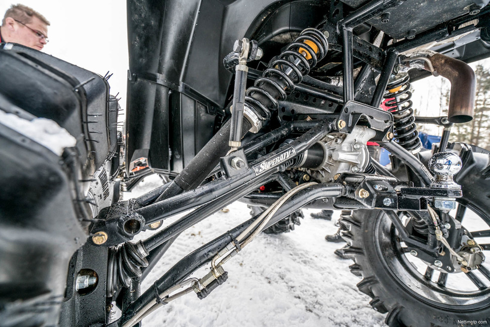 Juttumme Polarikseen modauksia on tehty isosti ja se on tiettävästi ainoa laatuaan maassamme, ainakin toistaiseksi. Korotussarja tarkoittaa uusia jousia ja iskareita sekä pidempiä ja kaarevia akseleita, jotka itsessään korottavat mönkijää noin 6 tuumaa. Niiden lisäksi siitä löytyy portaalinavat, joiden avulla korotusta tulee 4 tuumaa lisää. Portaalinavassa on erillinen napavälitys, joka lyhentää kokonaisvälitystä ja tuo myös lisää kestävyyttä.