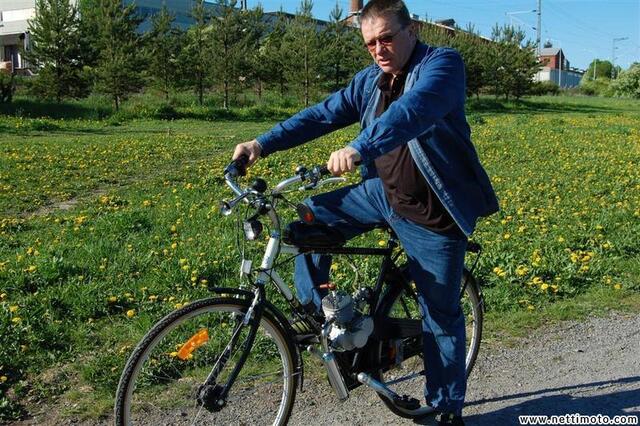 -Moottorikokoja on muutamia, mutta olemme päätyneet tähän 49 cc, koska hinta-laatusuhde on sopiva. Pyörällä ei ehkä kannata yrittää liian rajuja nopeuksia ja parhaimmillaan se onkin polkupyörän nopeuksissa.