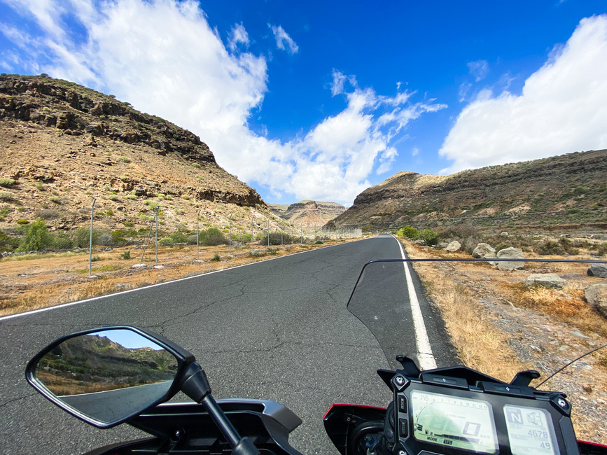 Käytännössä Gran Canaria on yksi hienoimmista ja helpoimmista kohteista ajaa kaksipyöräisellä, sillä mihin tahansa nokka osoittaakin, on edessä hienoja maisemia ja erinomaisia serpentiiniteitä. Paikalliselta asukkaalta saamani vinkki kertoo kaiken olennaisen ja estää eksymisen: aina kun ajat pidemmän pätkän alamäkeen, menet kohti merta. Sillä pärjää jo pitkälle.