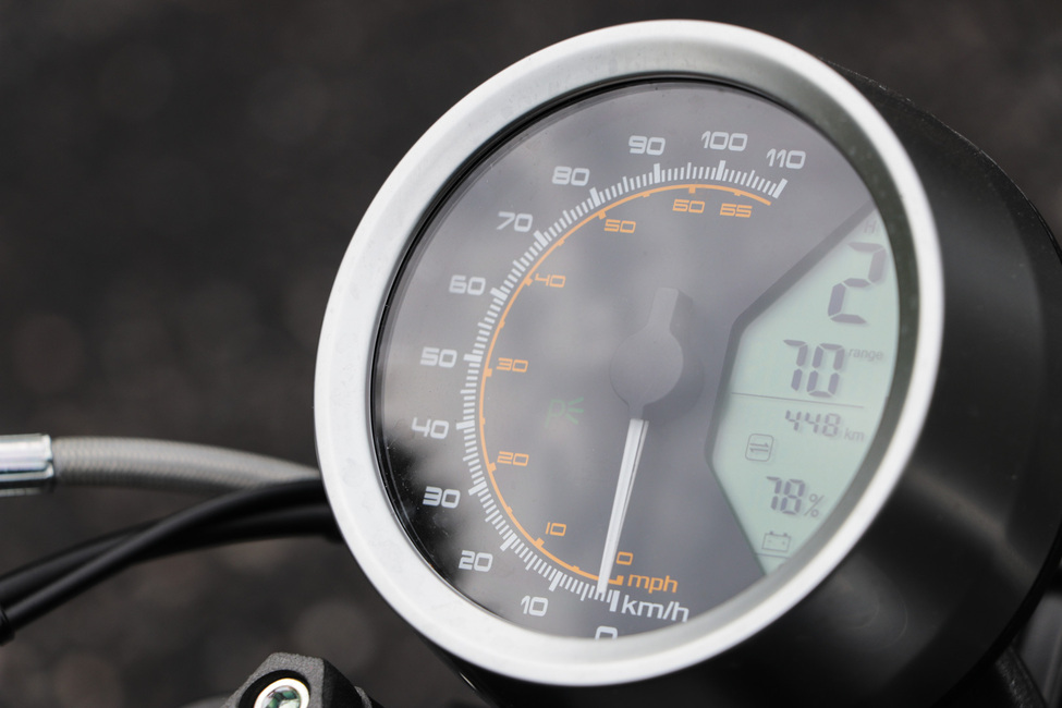 Se mikä Super Socossa luonnollisesti poikkeaa polttomoottoriluokkaan verrattuna, on äänettömyys. Kun Soco painetaan käyntiin, ei siitä kuulu pihaustakaan. Ainoa viite siihen, että kohta mennään, on mittaristossa oleva teksti: ready. Se tarkoittaa sitä, että pyörä on käyttövalmis.