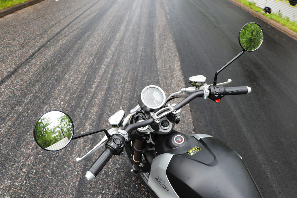 Ensituntuma pyörästä on kevyt. Vaikka Super Soco painaa 104 kiloa, tuntuu se sitäkin kevyemmältä. Suuri osa painosta syntyy luonnollisesti akusta, jota voidaan syyttää karkeasti noin neljänneksestä pyörän painoa.
