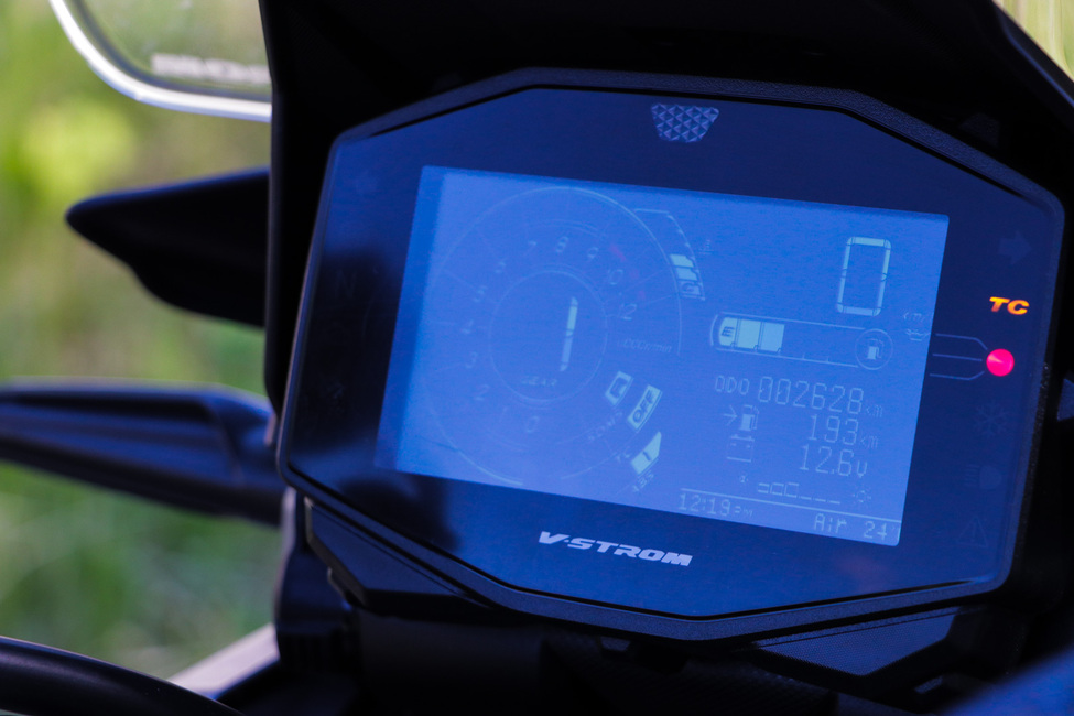 Mittariston näytön suhteen Suzuki on petrannut muutaman viime vuoden aikana, mutta se ei ole kehittynyt samaan tahtiin muiden valmistajien kanssa. Esimerkiksi BMW:n, KTM:n ja Ducatin näytöistä ollaan valovuosien päässä ja ohi ovat ajaneet myös muut japanilaisvalmistajat.