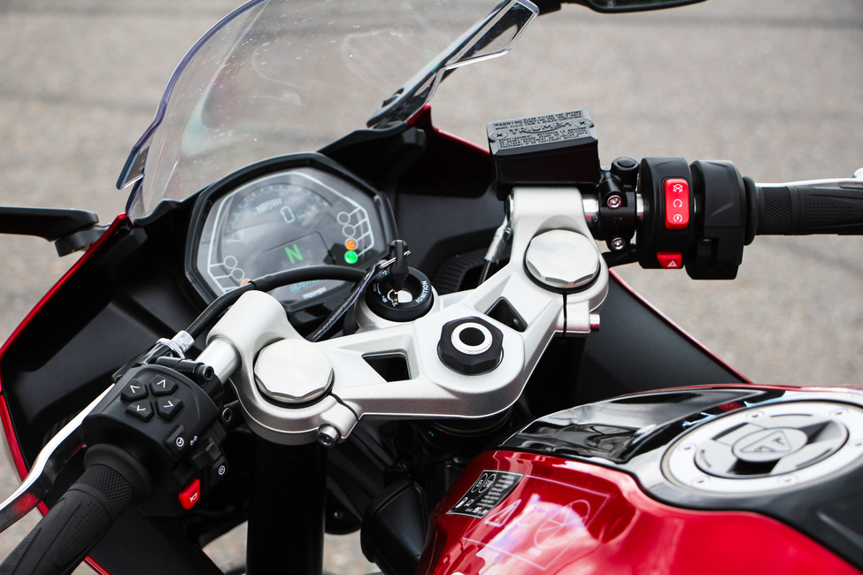 Ripeämmässä ajossa kierroksia on siis syytä pitää ylärekisterissä ja siinä hommassa avittaa oleellisesti erittäin sujuvatoiminen vaihteisto. Pykälät vaihtuvat täsmällisesti ja kevyttä kytkintä on helppoa operoida. Miinukseksi voi mainita quickshifterin puuttumisen vakiovarusteista. Lisävarusteena se toki on saatavilla ja myös ehdottomasti hankinnan arvoinen kampe.