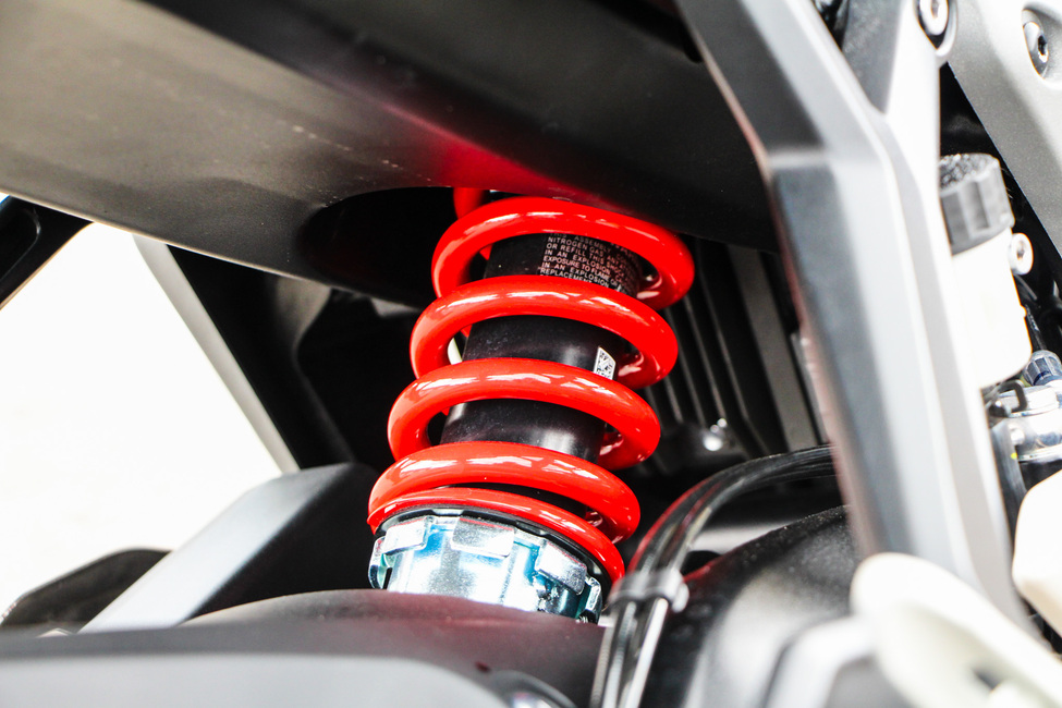 Perusolemukseltaan jousitus on enemmän mukavuuspainotteinen kuin sporttisen jämäkkä, mikä jokapäiväisessä käyttöpyörässä on tietenkin pelkkää plussaa. Vaimennustehoa riittää hyvin ja rengas pysyy kiinni tienpinnassa vähän reippaammassakin vauhdissa. Toki alustan rajat jossain vaiheessa tulevat vastaan vauhdin kasvaessa, mutta arkiseen sporttailuun ja miksei vaikka satunnaiseen rataharjoitteluunkin ominaisuudet riittävät hyvin. Mutkissa Daytona käyttäytyy vakaasti ja kääntyy ketterästi, jos ei nyt ihan ajatuksen voimalla niin pienen tangonpuskun saattelemana.