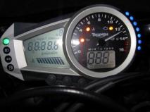 Sanoin kuvailtaessa Daytonan ulkonäkö noudattaa nykysuuntauksia. Kiilamaiset muodot edessä ja takana, putki satulan alle vedetty aivan kuten esimerkiksi CBR 600 RR:ssä.. Silti koeajettua pyörää tuli tutkailtua oikein huolella, läheltä ja kaukaa. Kauneus on toki katsojan silmissä, mutta Triumphin muotoiluosasto ansaitsee tiskillä mallasjuomat, pyörä on pirun hyvän näköinen. Kaikki muodot loksahtavat ensi silmäyksellä kohdalleen, kokonaisuus on hyökkäävän tasapainoinen. Mittaristo on selkeä, tietoa on saatavilla paljon, mutta sitä ei tarvitse hakemalla hakea. Isosta LCD-näytöstä käyvät ilmi myllyn lämpötila, käytössä oleva vaihde, kellonaika, kierrosajat sekä kaikki ajotietokoneen antama lisäinfo. Varvikello on analoginen (onneksi), sen alla majailee nopeusmittari ja oikealla kehällä seitsenmän lediä käsittävä vaihtovalo. Ajoasento tuntuu pyörän luonteen mukaisesti aika tiukalta. Silti 190-senttinen, tässä tapauksessa kankeahko ruho mahtuu kyytiin jopa yllättävän vaivatta.