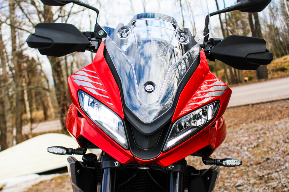 Koeajopyörä oli varustettu kahvasuojilla ja -lämppäreillä sekä molempiin suuntiin toimivalla vaihdeavustimella. Jotta matkapyörästä saisi kaiken irti, tarjolla on myös takalaukku sekä sivulaukut, joille löytyy valmiit kiinnityspisteet takarungosta. Oikeastaan ainoa varuste mitä jää kaipaamaan on vakionopeudensäädin, jota ei viime tiedon mukaan ole saatavilla lainkaan.