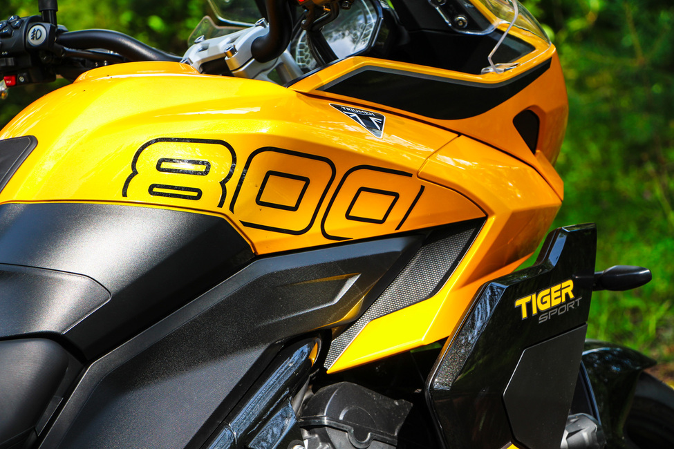 Uusi Tiger Sport 800 on ulkomuodoltaan hyvin pitkälle muutama vuosi sitten esitellyn pikkuveljensä, Tiger Sport 660:n kaltainen. Mallien rungot ovatkin perustaltaan samoja, mutta 800:n takahaarukka on uusi. Kokonaisuutena Tiger Sport on edelleen modernin linjakas ja kuten asiaan tietysti kuuluu, myös varsin sporttinen. Hyökkäävä Triumphin keulailme yhdistettynä hyviin muotoiltuun katteeseen ja leveään stongaan antavat Tiikerille harteikkaan ja lihaksikkaan olemuksen.