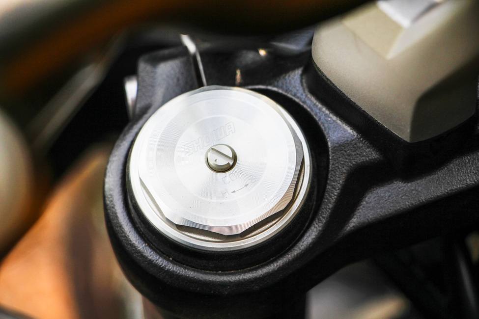 Joustomatkaa löytyy molemmista päistä 150 mm, mikä on tietysti pelkkää plussaa tiestömme kunnon huomioiden. Showan 41 mm USD-etuhaarukasta löytyy puristus- sekä paluuvaimennuksen säädöt ja takajousesta puolestaan esijännitys ja paluuvaimennus on säädettävissä. Takapään esijännitystä on helppo säädellä kierrettävän säätörullan avulla.