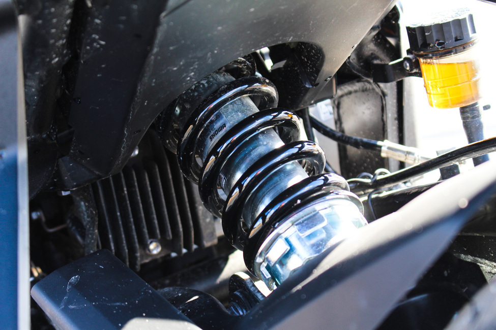 Jousitus on kokonaisuudessaan Showan valmistama, josta etupään 41 mm USD-haarukka on tehtaalla valmiiksi säädetty. Takajousesta löytyy sentään esijännityksen säätö, jos vaikka kyytiläinen pyrkii kahvilan nurkalta matkaan mukaan salskean brittiagentin nähtyään.