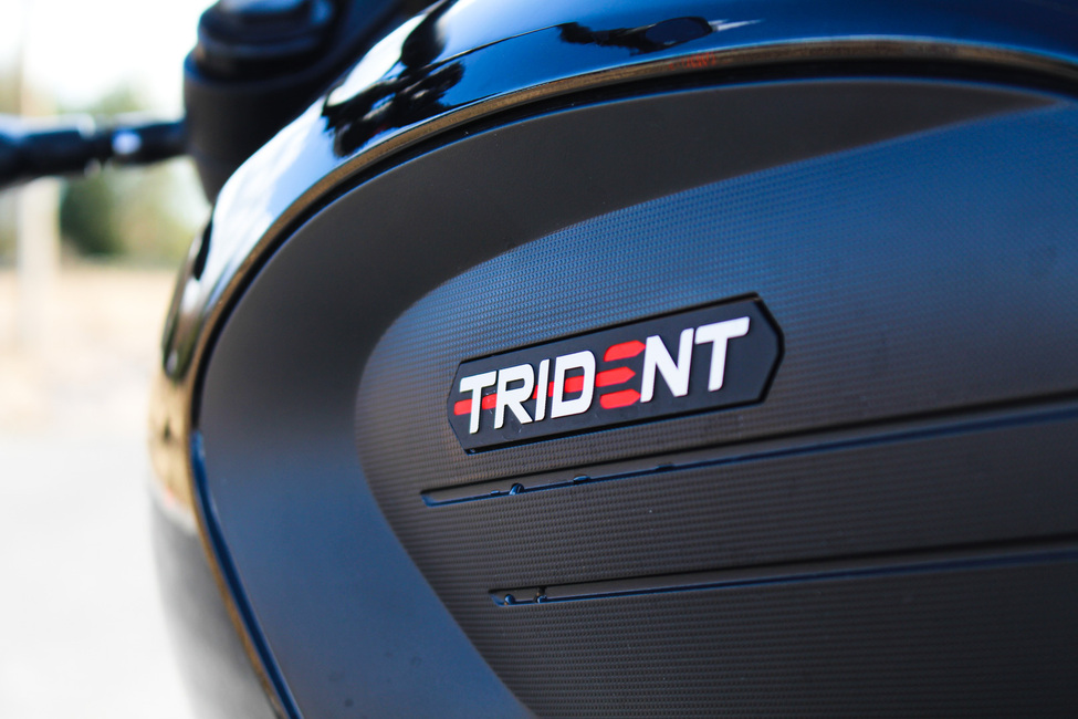 Vaikka 660-kuutioista Street Triplen sydäntä onkin Tridentiä varten hieman kuohittu, ei sen luonnetta ole täysin kadotettu. Moottori tuottaa parhaimmillaan 81 hevosvoiman tehon 10 250 kierroksen kohdalla ja 64 Nm:n väännön 6250 kierroksella. Valmistajan mukaan moottorin huippuväännöstä vähintään 90% on käytössä kierrosvälillä 3600 – 9750 rpm. Tämä on helppo uskoa, moottori on käytökseltään äärimmäisen nöyrä.
