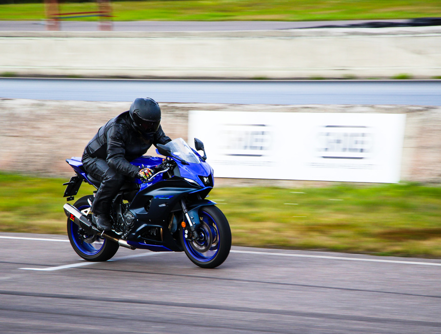 Ajamisen helppous nostaa suupielet virneeseen kypärän sisällä. Suorilla isommat pyörät menevät tietysti ohi heittämällä, mutta mutkassa R7 ottaa menetetyn takaisin. Jarrut purevat hyvin ja mutkaan tullessa jarrutuksen voi myös jättää paljon myöhemmäksi kuin nopeammilla pyörillä. Kovin hitaaksi ei tosin Yamahaakaan tohdi sanoa, Motoparkin takasuoralla R7 kelaa parhaimmillaan mittariin yli 200 km/h lukemat.