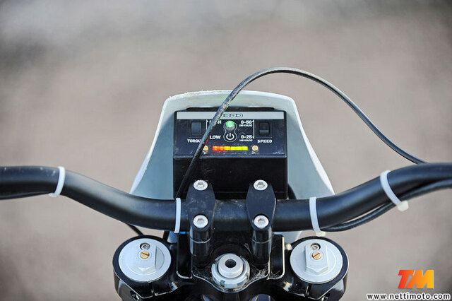 Mittaristo on karu. Siinä on ainoastaan merkkivalot akun varaukselle ja katkaisija eri vääntökäyrälle sekä rajoitetulle huippunopeudelle.