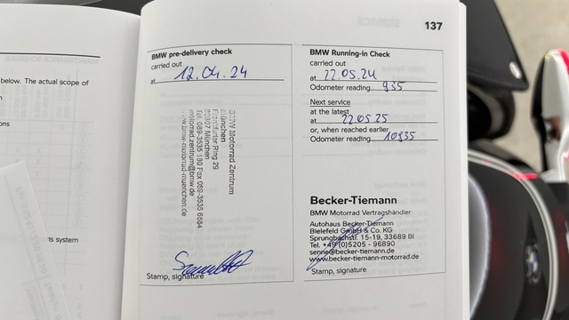 Täydellinen huoltohistoria. Edellinen BMW-huolto tehty 7/2025 Bike-Teamissa.