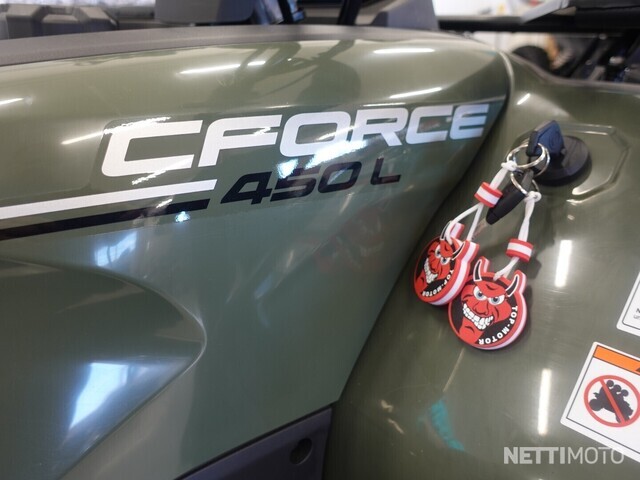 Mönkijän vakiovarusteena tulevat E-hyväksytty vinssi ja vetokuula, joista on hyötyä monenlaisissa töissä. Uusi CFORCE 450 -mönkijä on saatavilla lyhyenä ja pitkänä versiona vihreässä Hunter Green -värissä.