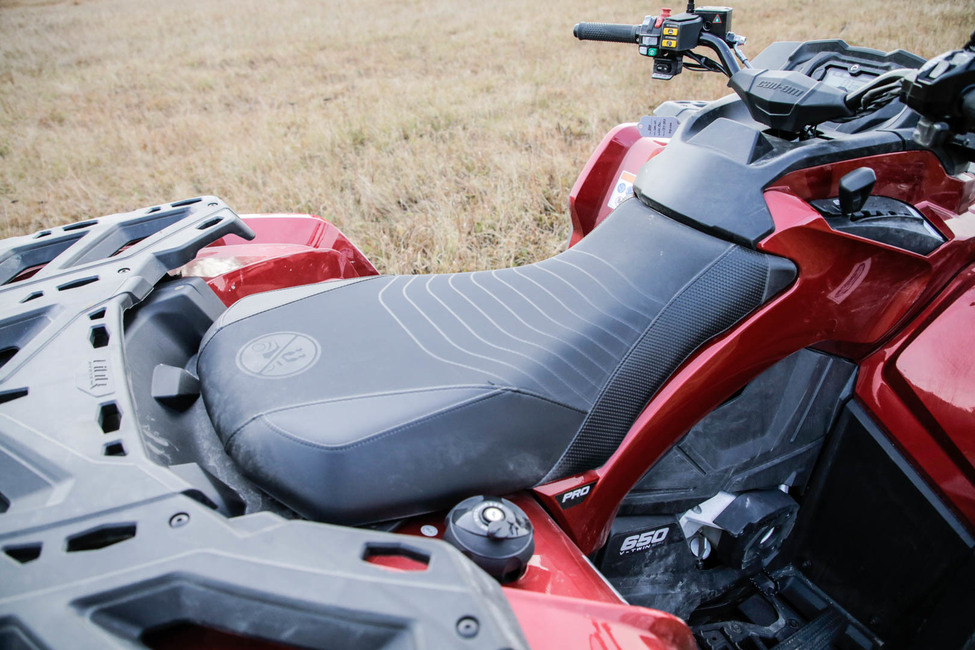 Myös penkki on laitettu uusiksi ja pinnoite on aiempaa pitävämpi ja kestävämpi. Se on asia, jota osaa arvostaa erityisesti kovassa työkäytössä jollaiseen Can-Amin Outlanderit ovat luotuja. Se on keskiluokassakin järeä ja voimakas työkaveri, joka ei helposti jätä kuskia pulaan. Tästä kertoo mm. 750 kilon vetokyky.