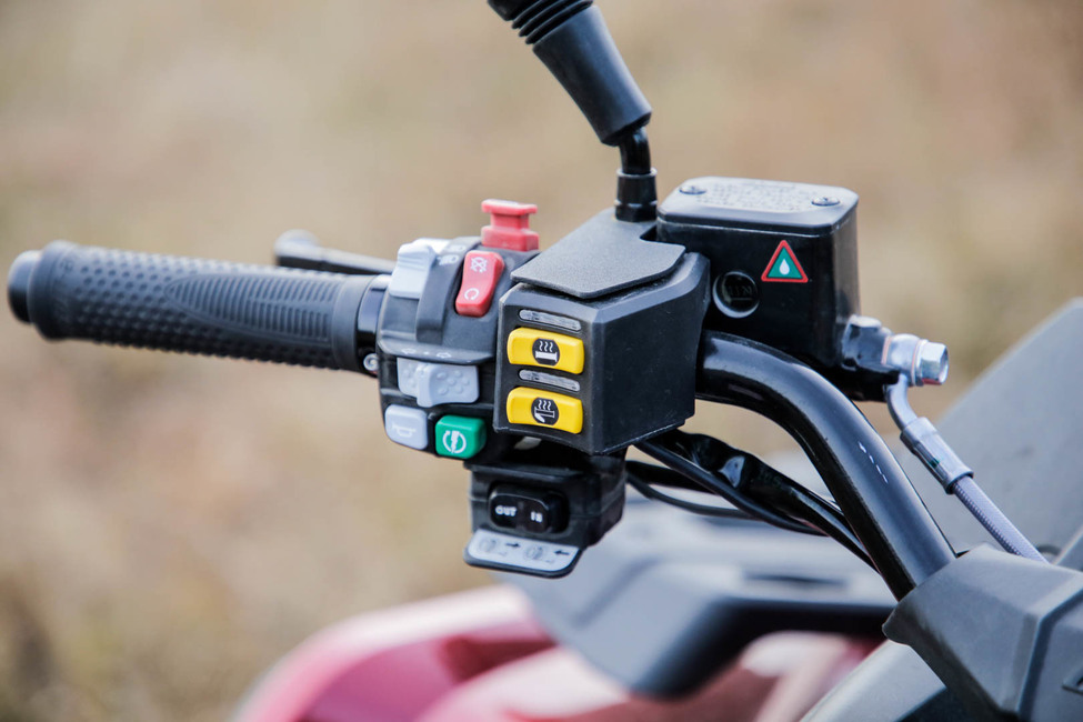 Pro-mallista löytyy suomalaisiin olosuhteisiin sopivia varusteita, kuten uusittu 1361 kiloa vetävä vinssi. Voimaa siitä ei siis jää uupumaan. Toinen varsin ilahduttava varuste ovat lämpökahvat ja kaasuläppä. Ne ovat kelkoista tuttuja varusteita, mutta varsin tervetulleita myös mönkkäripuolelle.