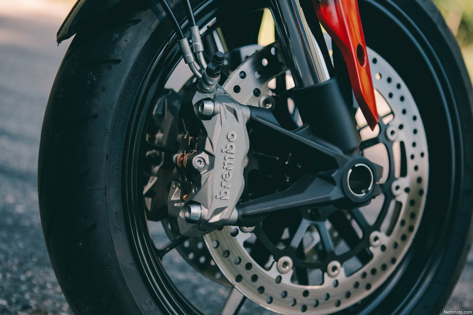 Siinä missä Ducatin entry level –osastoa edustava Scrambler on kasattu hieman vaatimattomammista osista, edustaa Hypermotard komponenttiensa suhteen luokkansa huippua. Radiaalijarrut, ajotilat, yksipuoleinen takaswingi, näyttävät vanteet ja moderni luistonesto takaavat sen, että laatu tuntuu jokaisella ajokerralla.