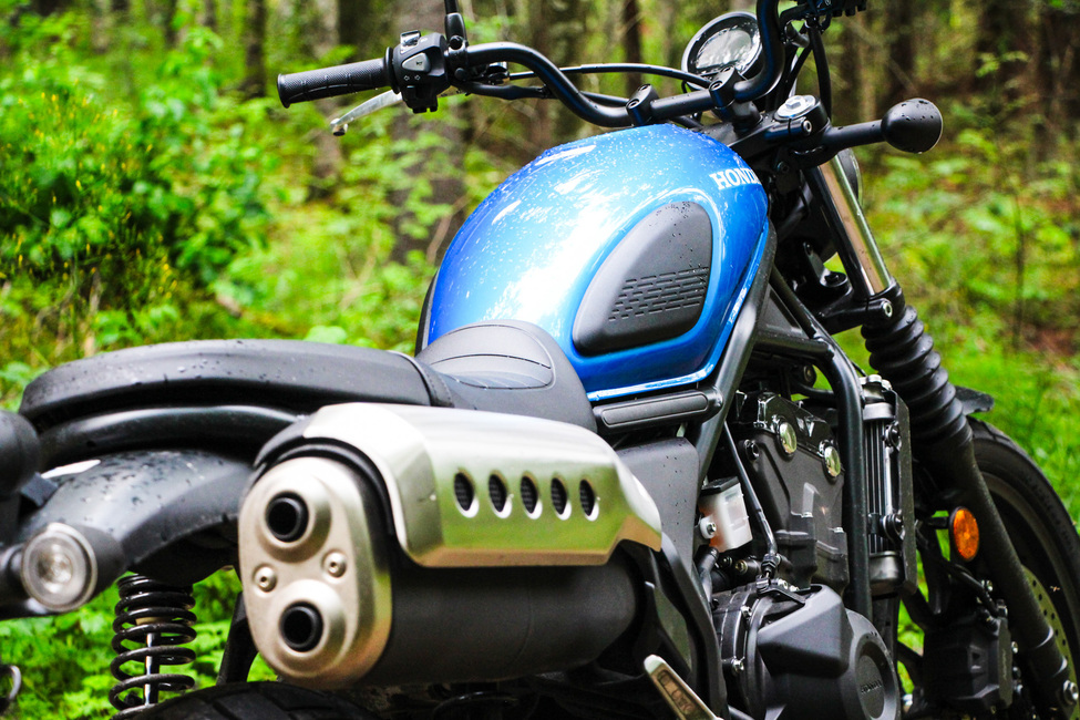 Hondan ulkomuoto onkin kuin retro-scramblerin rakentelun oppikirjasta. Pyöreämuotoinen tankki, litteä ja maltillisesti muotoiltu satula sekä ylös vedetty äänenvaimennin ovat yksityiskohtia, joihin huomio kiinnittyy ensimmäisenä. Tyyliin sopiva pyöreä ajovalo on toteutettu nykyaikaisesti led-tekniikalla ja mittaristona toimii niin ikään pyöreä lcd-näyttö, josta selviää lähinnä se olennaisin tieto, mitä ajossa tarvitaan.