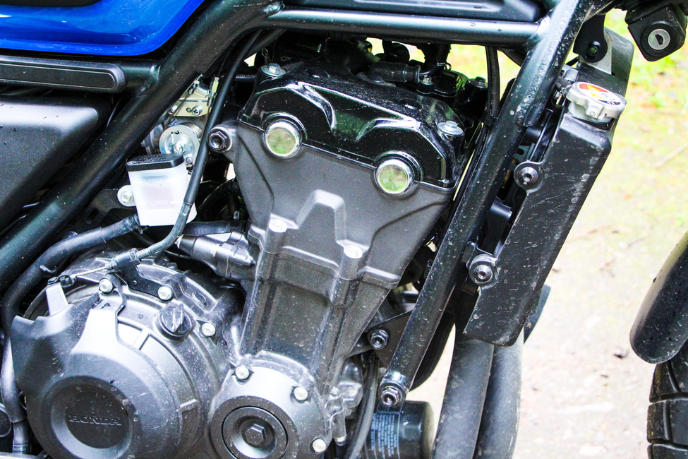 Käytössä Hondan 500-kuutioinen rivikakkonen on erittäin nöyrä ja joustava palvelija. Sitkeyttä löytyy pannun koko huomioiden mukavasti jo heti alakierroksilla ja toisaalta se myös kiertää pirteästi. Tehopiikkejä kierrosalueelta ei löydy, vaan teho kasvaa kierrosten mukaan tasaisesti. Tarvittaessa kone venyy loputtoman tuntuisesti, mutta lisää voimaa ihan ylimmiltä kierroksilta ei enää löydy. Häiritseviä tai puuduttavia värinöitä ei juurikaan esiinny millään kierroksilla.