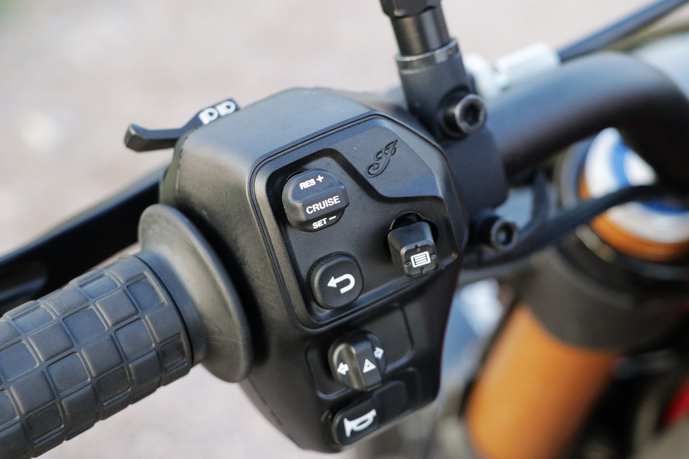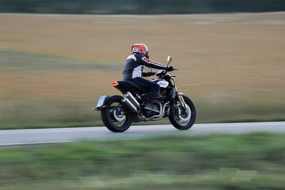 Vaihteisto on välitetty melko lyhyeksi, joka lisää ärhäkkyyden tunnetta. Keula tuntuu kevenevän vähänkään reippaammassa kaasun avauksessa välittömästi, mikä taas nostaa suupieliä korvia kohti samassa suhteessa. Hetkisen totuttelun jälkeen vaihdan Sport-moodille, jolloin myllyn luonne pääsee parhaiten oikeuksiinsa. Täyskaasukiihdytys FTR:llä on sanalla sanoen päräyttävä kokemus.