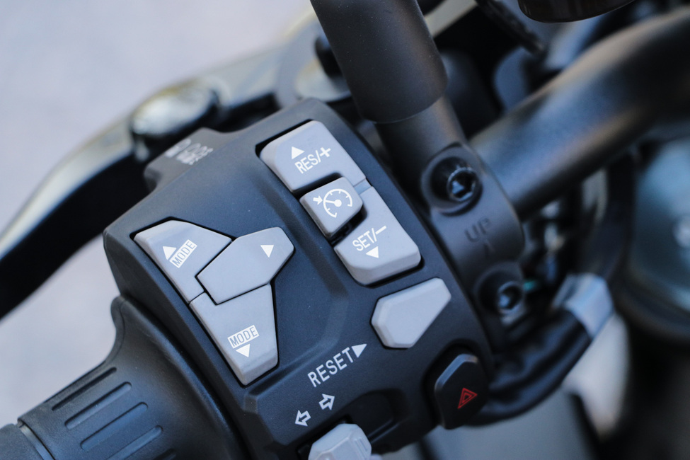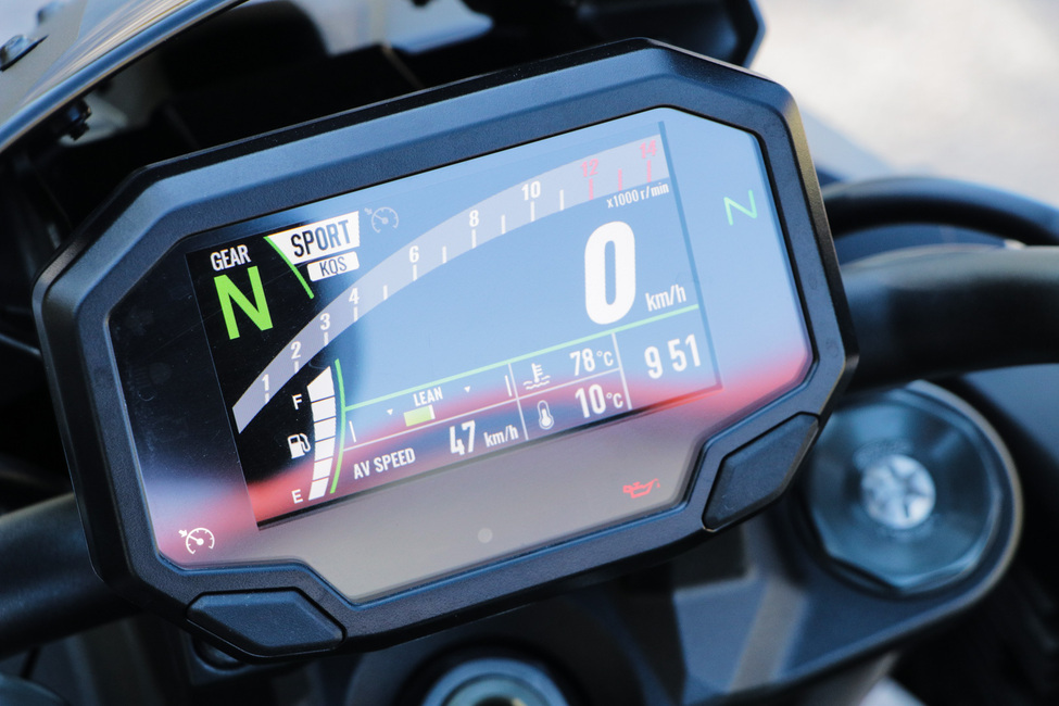 Elektroniikka tarjoaa useamman ajotilan, mutta käytännössä yksi ajotila riittää. Sportilla kaasunvaste on mukavan helppo, mutta kuten todettu, voimaa piisaa. Rider-ajotilaa tarvitsee oikeastaan siihen jos haluaa tehdä komeita burniksia ilman luistonestoa.