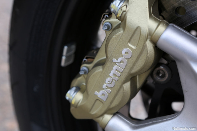 Myös jarrut ovat totuttuun tapaan parasta mitä rahalla voidaan hankkia ja edestä löytyy Brembon radiaalit ja takaa saman valmistajat 2-mäntäiset puristajat. Ne takaavat rivakalle vauhdin kehitykselle arvoisensa stopin.