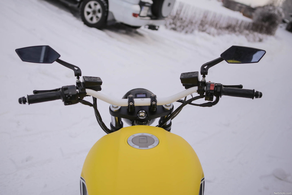 Modernia twistiä ja harkittuja yksityiskohtia edustavat myös tangonpäävilkut, jotka ovat saksalaisvalmistaja Kellermanin tuotantoa. Muualla kuin kotimaassa ne riittäisivät ainoiksi vilkuiksi, mutta Kekkoslovakiassa täytyy varustautua myös taakse tulevilla vilkuilla, joten sellaisen on leivottava kiinni vielä ennen muutoskatsastusta. Modernia tyylisuuntaa edustaa myös Koson D1 Oled –mittaristo, joka on huomaamaton, mutta toimiva kokonaisuus.