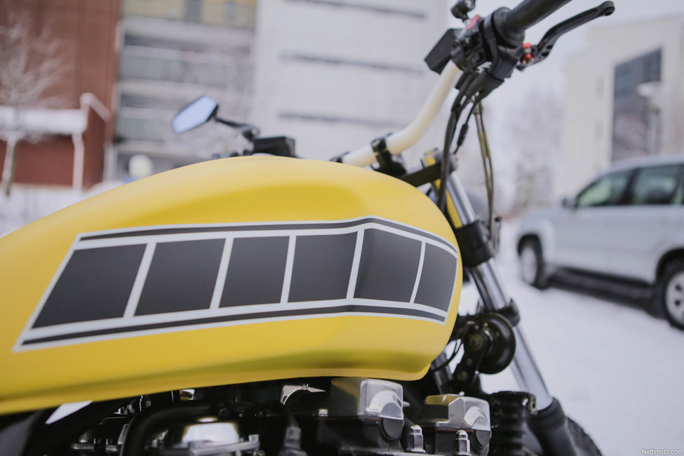 Juuri tästä syystä lähtökohdaksi oli haussa hieman persoonallisempi vaihtoehto, jolloin lopputuloksestakin tulisi tavanomaisesta poikkeava. Valmista pyörää voisikin nimittää ennemminkin kahvilamuskeliksi kuin perinteiseksi café raceriksi.